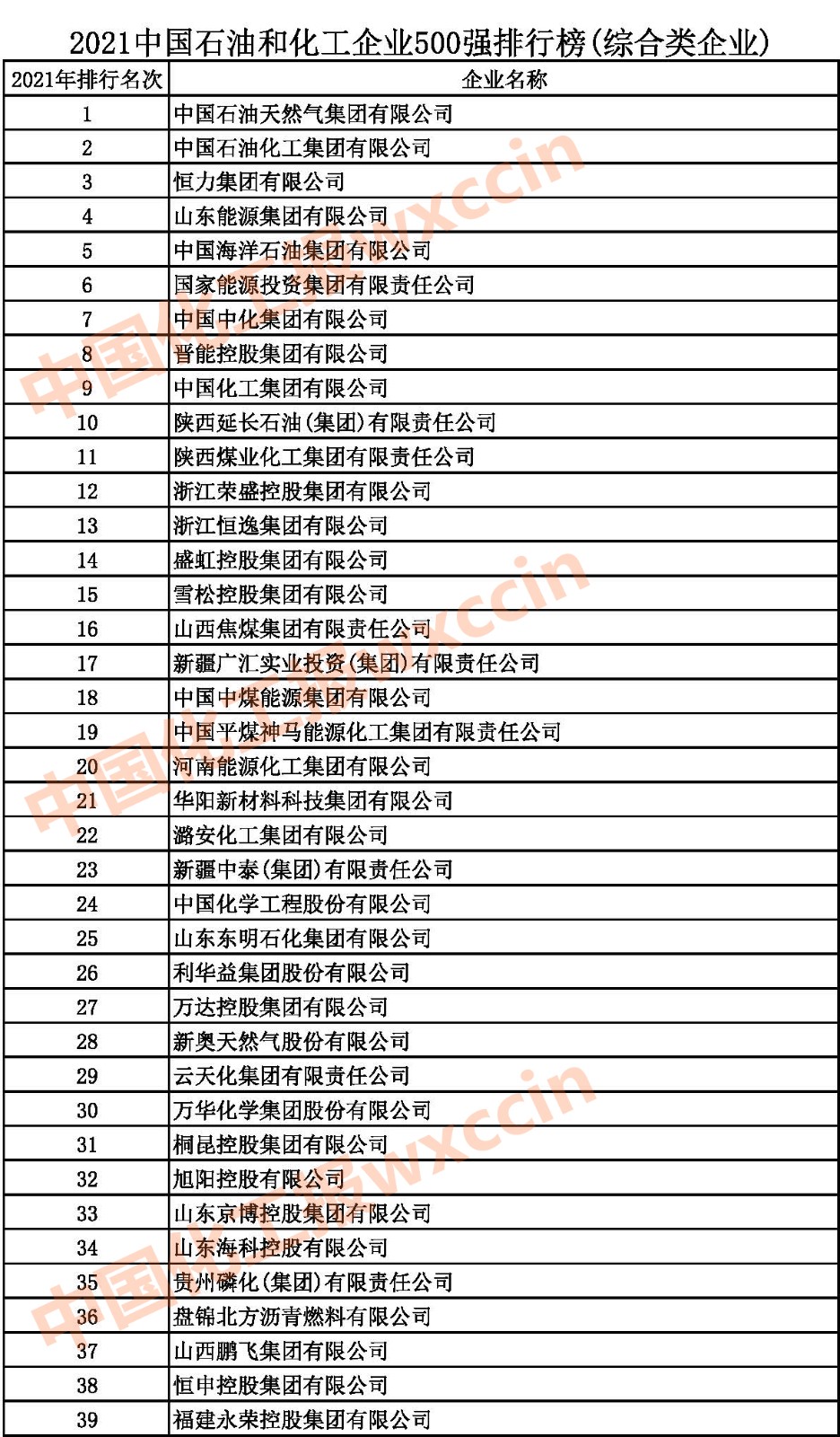 11月29日,2021中國石油和化工企業(yè)500強發(fā)布會暨雙循環(huán)新格局下石油化工大企業(yè)的機遇與挑戰(zhàn)高峰論壇和大連市石化產(chǎn)業(yè)推介會在線上舉行。會議發(fā)布了2021中國石油和化工企業(yè)500強排行榜和分行業(yè)排行榜;首次發(fā)布了2021石油和化工上市公司500強和上市公司市值500強排行榜。中國石油化工集團有限公司、中國石油天然氣集團有限公司、恒力集團有限公司3家企業(yè)位列榜單前三名。與上年相比,今年約有100家能源、基礎化工原料型化工企業(yè)退出了500強排行榜,有100家化工新材料、專用化學品和高效、長效的新型農(nóng)藥產(chǎn)品等新企業(yè)進入榜單,這體現(xiàn)了“十三五”期間行業(yè)“去產(chǎn)能、調(diào)結(jié)構”取得了明顯的成績,彰顯了行業(yè)的發(fā)展進步。榜單中有26家石油和化工企業(yè)進入世界500強,與去年持平。