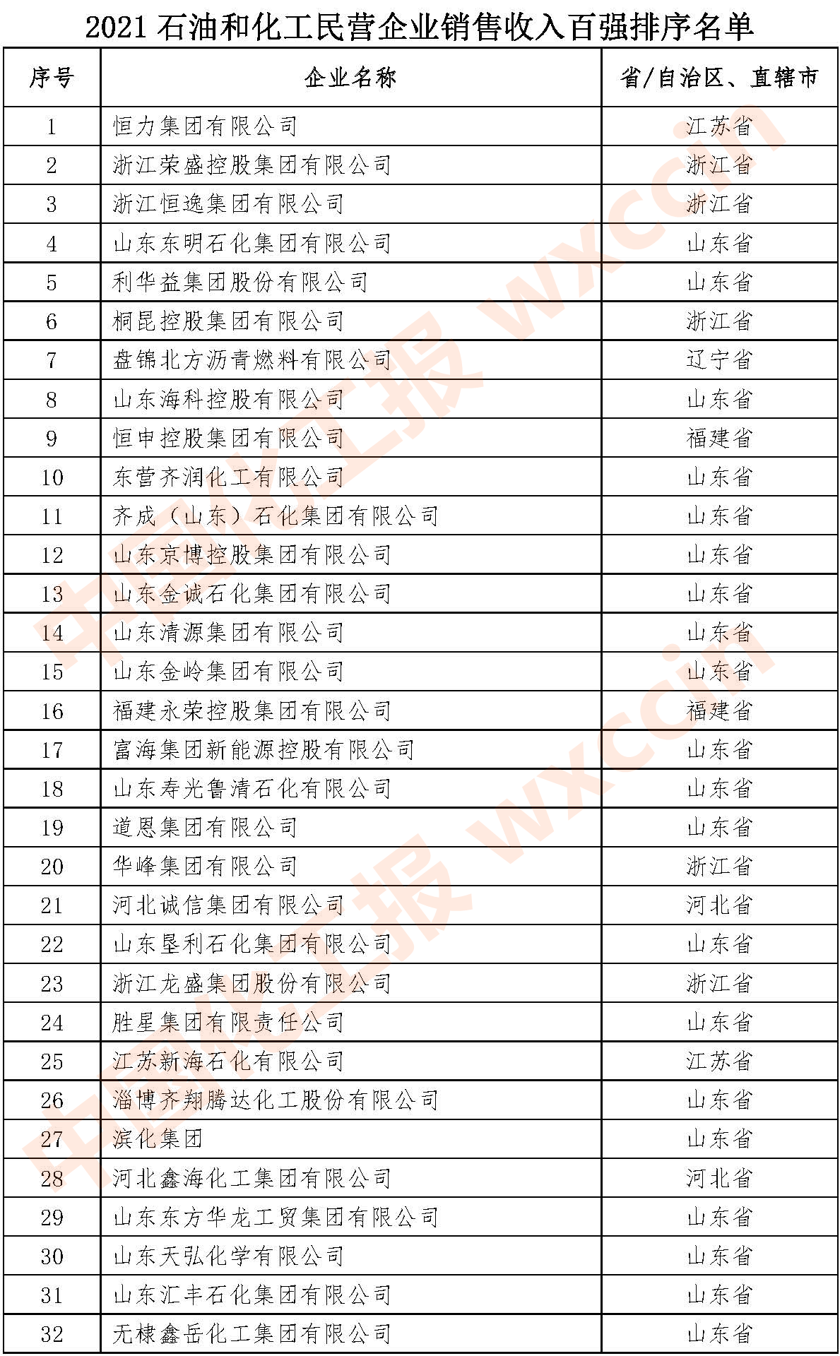 2021石油和化工民營(yíng)企業(yè)百?gòu)?qiáng)出爐(全名單)