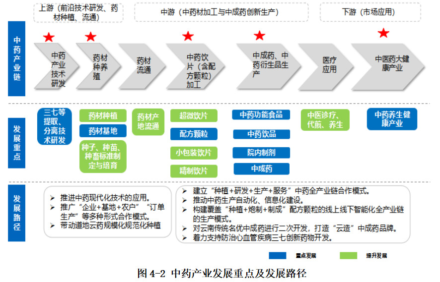 三是促進產學研用深度融合。鼓勵省內龍頭企業(yè)聯(lián)合高校、科研院所建設省級中醫(yī)藥制造業(yè)創(chuàng)新中心,對接與加入國家或云南省產業(yè)技術創(chuàng)新聯(lián)盟。聚焦產業(yè)鏈、供應鏈關鍵“卡點”,打通創(chuàng)新銜接的綠色通道,形成基礎研究、應用研究和成果轉化貫通發(fā)展的創(chuàng)新生態(tài)。積極參與重大創(chuàng)新項目研究、重點實驗室建設、技術標準制定、產業(yè)技術路線圖編制、專利共享和成果轉化推廣。