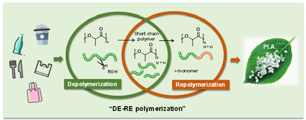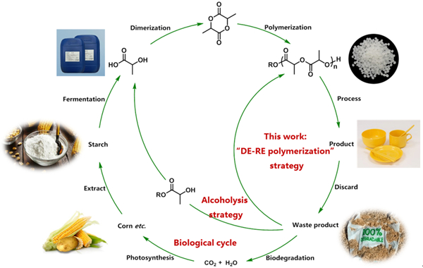 圖2 聚乳酸降解再聚合化學(xué)循環(huán)策略
