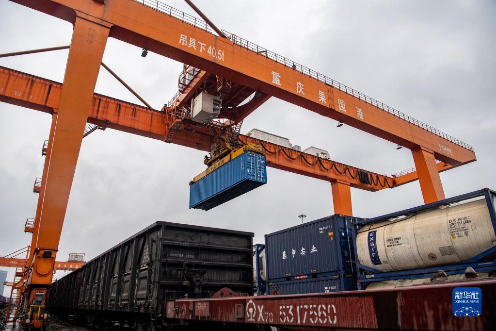 這是2月19日拍攝的重慶果園港裝載作業(yè)現(xiàn)場(chǎng)。新華社記者 唐奕 攝
