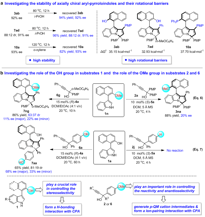 圖7 探究軸手性芳基吡咯并吲哚骨架的穩(wěn)定性及控制實驗