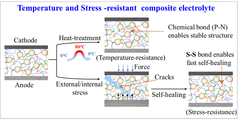溫度/應(yīng)力自適應(yīng)固態(tài)電解質(zhì)作用機(jī)理示意圖