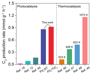 甲烷作為一種重要的碳基小分子,在自然界分布廣泛,是天然氣、頁(yè)巖氣、可燃冰、沼氣等的主要成分。迄今為止,甲烷的使用仍以燃燒為主,導(dǎo)致排放出大量的二氧化碳。甲烷作為化工原料主要用于合成氨、甲醇及其衍生物,但其用量?jī)H占天然氣消耗量的5%-7%。雖然甲烷儲(chǔ)量遠(yuǎn)遠(yuǎn)超過石油儲(chǔ)量,但作為化工原料其開發(fā)程度遠(yuǎn)無法與石油相比。如何將儲(chǔ)量巨大的甲烷資源轉(zhuǎn)化為具有更高經(jīng)濟(jì)附加值的燃料或化工產(chǎn)品,具有重要的科學(xué)意義和應(yīng)用前景。太陽(yáng)能作為最為豐富和清潔的能源,可通過光催化方式在溫和條件下驅(qū)動(dòng)甲烷轉(zhuǎn)化為多碳燃料或化學(xué)品。近年來,中國(guó)科學(xué)技術(shù)大學(xué)熊宇杰教授和龍冉教授研究團(tuán)隊(duì)發(fā)展了一系列光/光電催化方法,實(shí)現(xiàn)了甲烷高選擇性轉(zhuǎn)化制乙烷、乙烯和乙二醇(J. Am. Chem. Soc. 2021, 143, 269;Angew. Chem. Int. Ed. 2021, 60, 9357)。