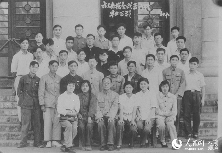 云南大學(xué)有機(jī)合成化學(xué)專業(yè)畢業(yè)留影(1962年)(孫漢董為第二排右三)。受訪者供圖