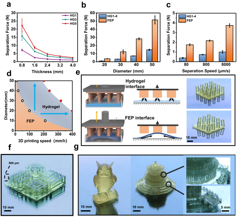 團(tuán)隊(duì)將軟、厚的水凝膠作為分離界面,直接集成到商用的DLP打印機(jī)中,在打印速度、樹脂兼容性和打印可靠性等方面表現(xiàn)出顯著的優(yōu)勢,有望實(shí)際應(yīng)用于大規(guī)模的產(chǎn)業(yè)化。