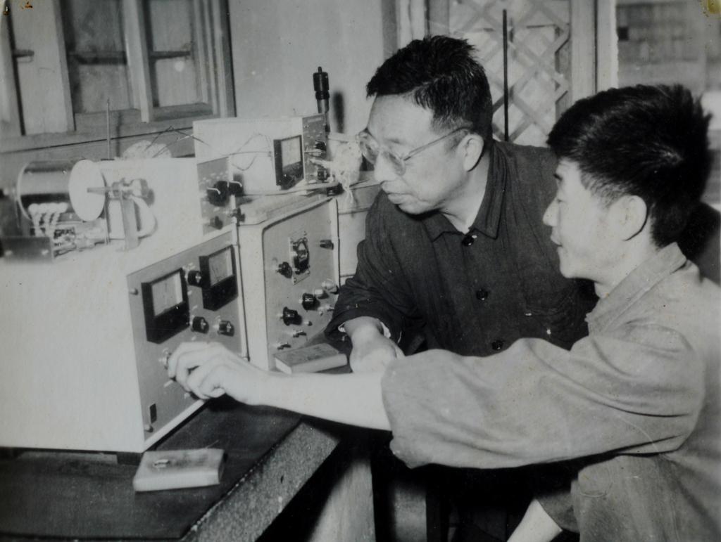 圖19:唐敖慶(左)同江元生(中)等一起研究一種分子的光譜圖
