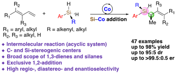 圖 鈷催化1,3-二烯與潛手性硅烷區(qū)域和立體選擇性的不對稱氫硅化反應(yīng)