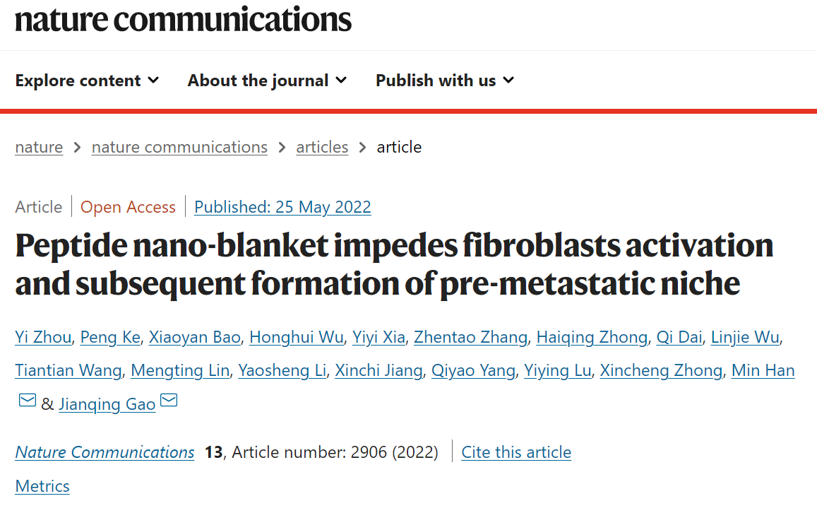 該研究設(shè)計(jì)構(gòu)建了轉(zhuǎn)移前微環(huán)境響應(yīng)性后組裝多肽FR17,并證明FR17在體后組裝形成的“多肽納米毯”通過抑制成纖維細(xì)胞激活調(diào)控轉(zhuǎn)移前微環(huán)境的形成,實(shí)現(xiàn)了腫瘤轉(zhuǎn)移的有效防治,為抗腫瘤轉(zhuǎn)移多肽藥物遞送提供了一種自身具有微環(huán)境調(diào)控能力的響應(yīng)性后組裝功能性載體平臺。