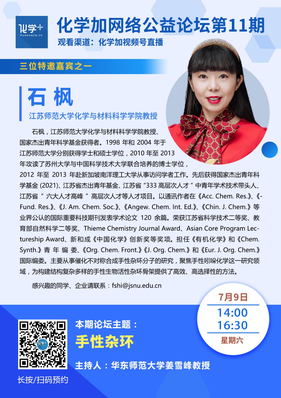 石楓,江蘇師范大學(xué)化學(xué)與材料科學(xué)學(xué)院教授、國家杰出青年科學(xué)基金獲得者。1998年和2004年于江蘇師范大學(xué)分別獲得學(xué)士和碩士學(xué)位,2010年至2013年攻讀了蘇州大學(xué)與中國科學(xué)技術(shù)大學(xué)聯(lián)合培養(yǎng)的博士學(xué)位,2012年至2013年赴新加坡南洋理工大學(xué)從事訪問學(xué)者工作。先后獲得國家杰出青年科學(xué)基金 (2021)、江蘇省杰出青年基金、江蘇省“333高層次人才”中青年學(xué)術(shù)技術(shù)帶頭人、江蘇省“六大人才高峰”高層次人才等人才項(xiàng)目。以通訊作者在《Acc. Chem. Res.》、《Fund. Res.》、《J. Am. Chem. Soc.》、《Angew. Chem. Int. Ed.》、《Chin. J. Chem.》等業(yè)界公認(rèn)的國際重要科技期刊發(fā)表學(xué)術(shù)論文120余篇。榮獲江蘇省科學(xué)技術(shù)二等獎(jiǎng)、教育部自然科學(xué)二等獎(jiǎng)、Thieme Chemistry Journal Award、Asian Core Program Lectureship Award、新和成《中國化學(xué)》創(chuàng)新獎(jiǎng)等獎(jiǎng)項(xiàng)。擔(dān)任《有機(jī)化學(xué)》和《Chem. Synth.》青年編委、《Org. Chem. Front.》《J. Org. Chem.》和《Eur. J. Org. Chem.》國際編委。主要從事催化不對(duì)稱合成手性雜環(huán)分子的研究,聚焦手性吲哚化學(xué)這一研究領(lǐng)域,為構(gòu)建結(jié)構(gòu)復(fù)雜多樣的手性生物活性雜環(huán)骨架提供了高效、高選擇性的方法。感興趣的同學(xué)、企業(yè)請(qǐng)聯(lián)系:fshi@jsnu.edu.cn