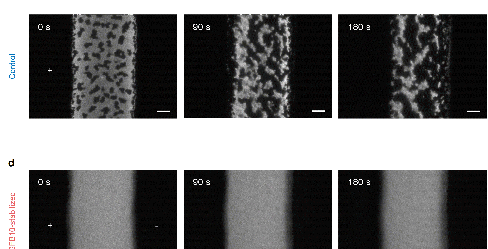 顯微熒光成像實(shí)驗(yàn)觀察鈣鈦礦在電場(chǎng)下的離子遷移效應(yīng)。來(lái)源: Nature Photonics (2022)。