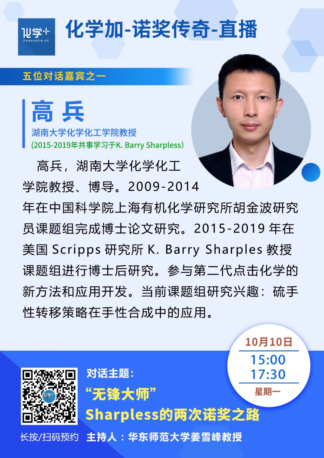 高 兵 湖南大學(xué)化學(xué)化工學(xué)院教授 (2015-2019年共事學(xué)習(xí)于K. Barry Sharpless)
