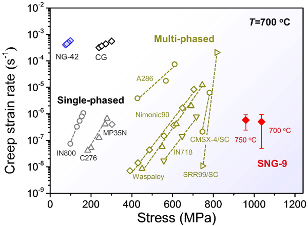 金屬材料在高溫下長期承受低于屈服強度的應(yīng)力作用時會發(fā)生永久形變,通常稱為蠕變。蠕變會導(dǎo)致高溫金屬構(gòu)件的變形失效,是高溫合金的一項重要性能指標(biāo)。通過合金化和減少晶界(制備單晶)可提升高溫合金抗蠕變性能,但這帶來合金制備工藝復(fù)雜、成本居高不下等一系列問題。進(jìn)一步提升高溫合金的抗蠕變性能面臨巨大挑戰(zhàn)。
