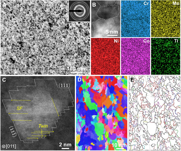 圖1 具有弛豫晶界的納米晶MP35N合金的結(jié)構(gòu)