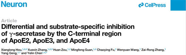 陳椰林課題組發(fā)現(xiàn)ApoE異構體帶來的致病風險與其直接特異性抑制APP的γ剪切活性相關,提出了ApoE異構體改變AD風險的新理論。具有保護作用的ApoE2具有最強的抑制活性,而增加患病風險的ApoE4則失去了該活性,因此兩者在AD疾病進程中功能截然不同。該理論首次將fAD的致病基因和sAD的風險基因從功能上直接聯(lián)系在一起,提示APP的γ酶切異常是fAD和sAD共同的致病原因。