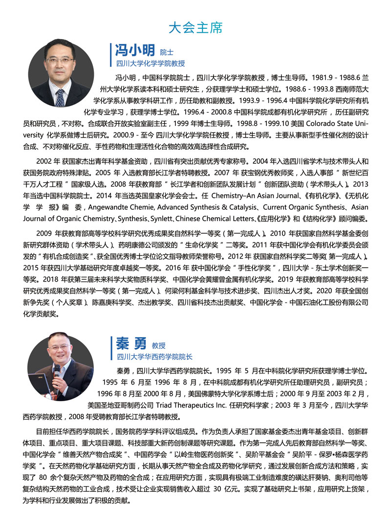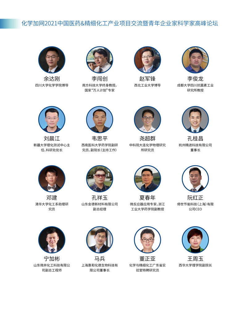 導(dǎo)讀:2021年10月18-19日,化學(xué)加網(wǎng)2021中國(guó)醫(yī)藥&精細(xì)化工產(chǎn)業(yè)項(xiàng)目交流暨青年企業(yè)家科學(xué)家高峰論壇線(xiàn)下千人大會(huì)在成都成功舉辦,中國(guó)科學(xué)院院士、四川大學(xué)化學(xué)學(xué)院馮小明教授,四川大學(xué)華西藥學(xué)院院長(zhǎng)秦勇教授,及多位上市公司董事長(zhǎng),共計(jì)70多位科學(xué)家、企業(yè)家出席,并做主題報(bào)告分享。