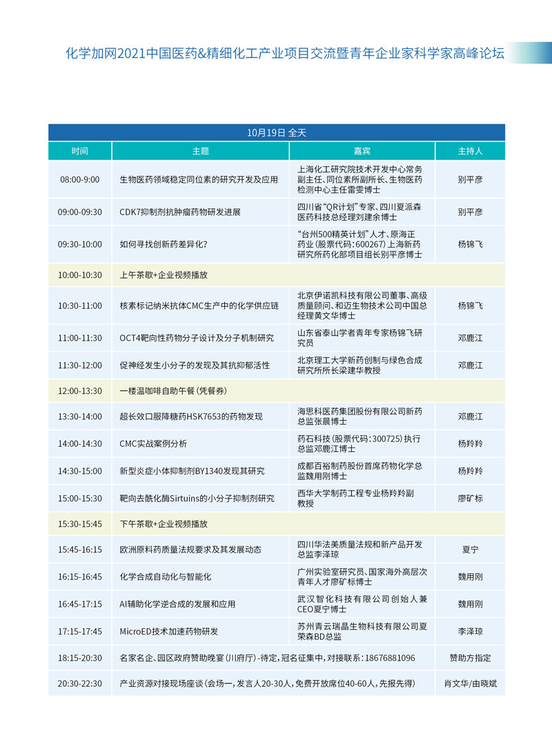 化學(xué)加2021成都峰會(huì)報(bào)告嘉賓及現(xiàn)場(chǎng)參展企業(yè)