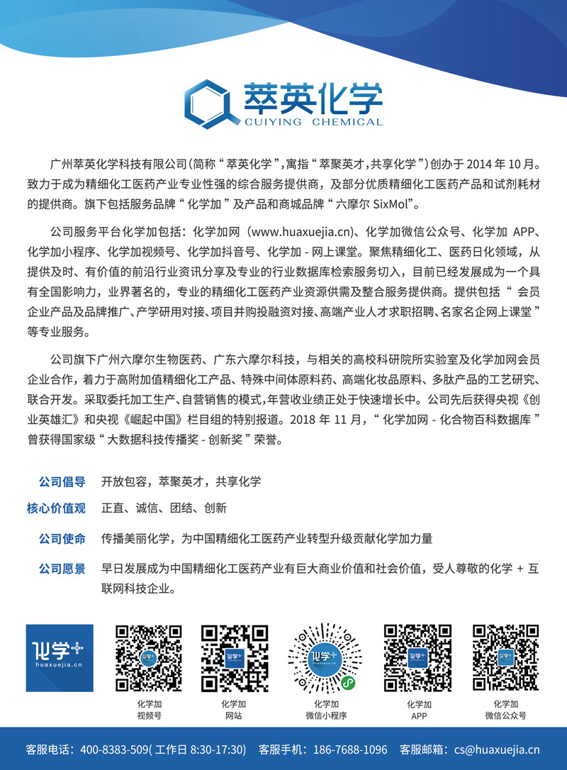 聲明:化學(xué)加刊發(fā)或者轉(zhuǎn)載此文只是出于傳遞、分享更多信息之目的,并不意味認(rèn)同其觀(guān)點(diǎn)或證實(shí)其描述。若有來(lái)源標(biāo)注錯(cuò)誤或侵犯了您的合法權(quán)益,請(qǐng)作者持權(quán)屬證明與本網(wǎng)聯(lián)系,我們將及時(shí)更正、刪除,謝謝。 電話(huà):18676881059,郵箱:gongjian@huaxuejia.cn