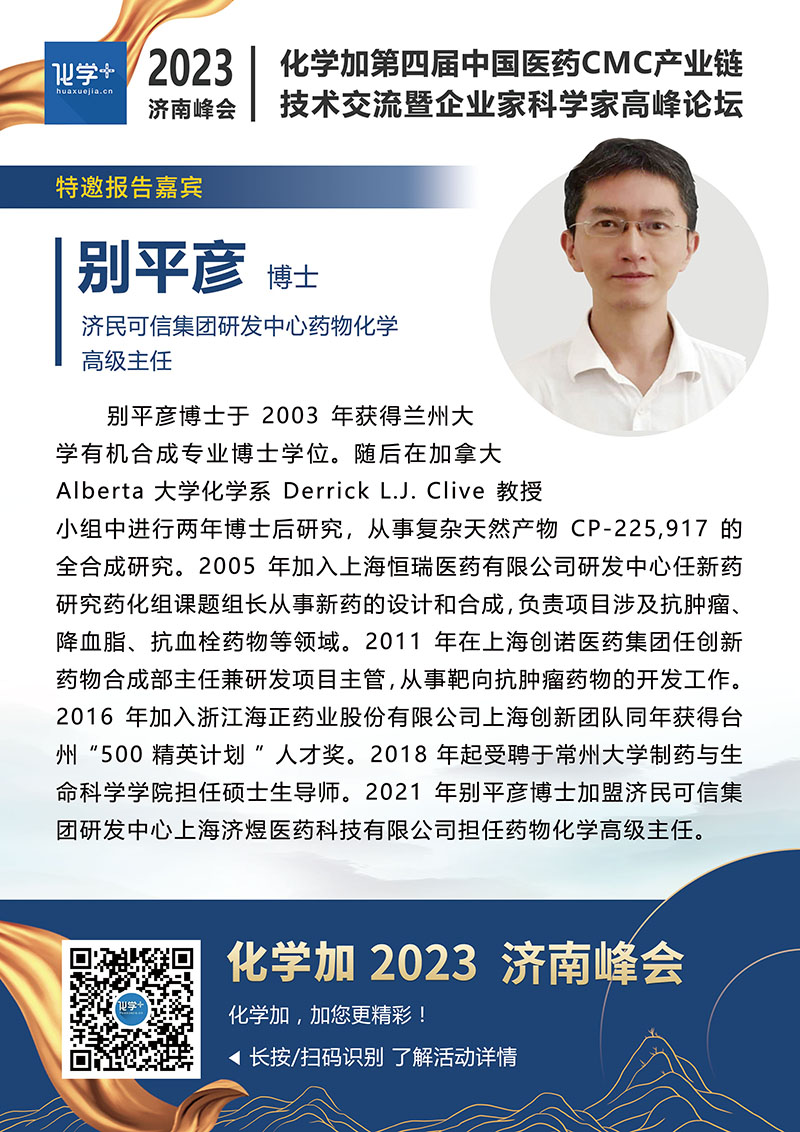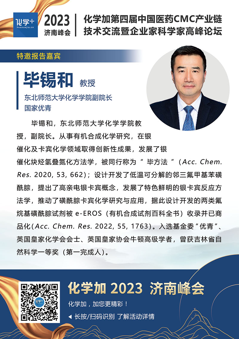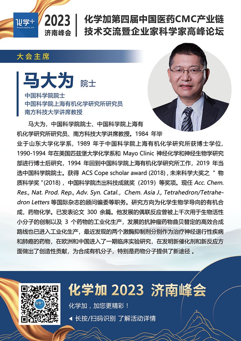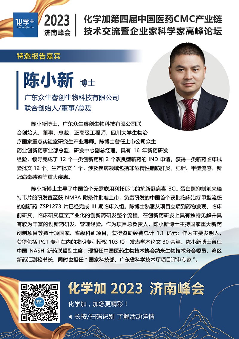 【嘉賓簡介】化學(xué)加2023濟(jì)南峰會(huì):第四屆中國醫(yī)藥CMC產(chǎn)業(yè)鏈技術(shù)交流暨企業(yè)家科學(xué)家高峰論壇