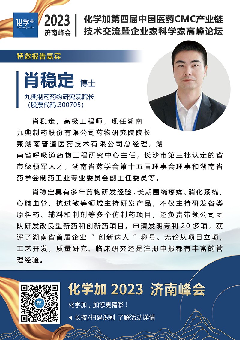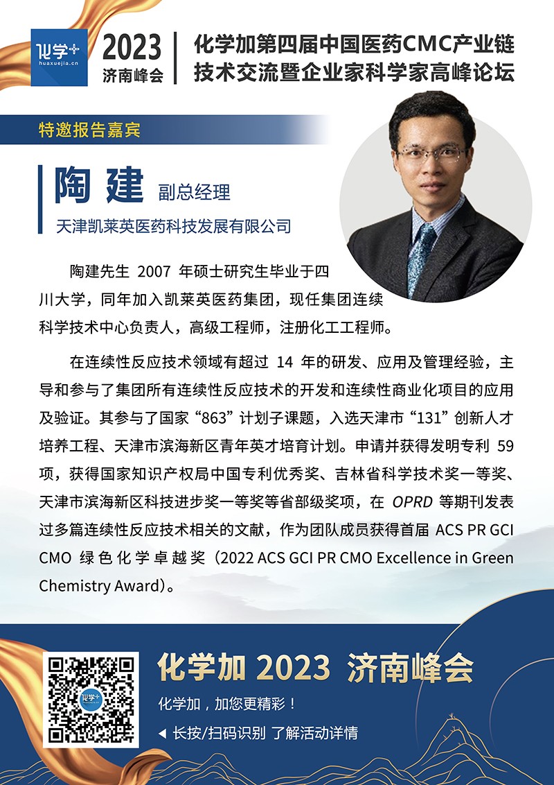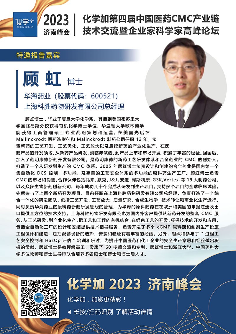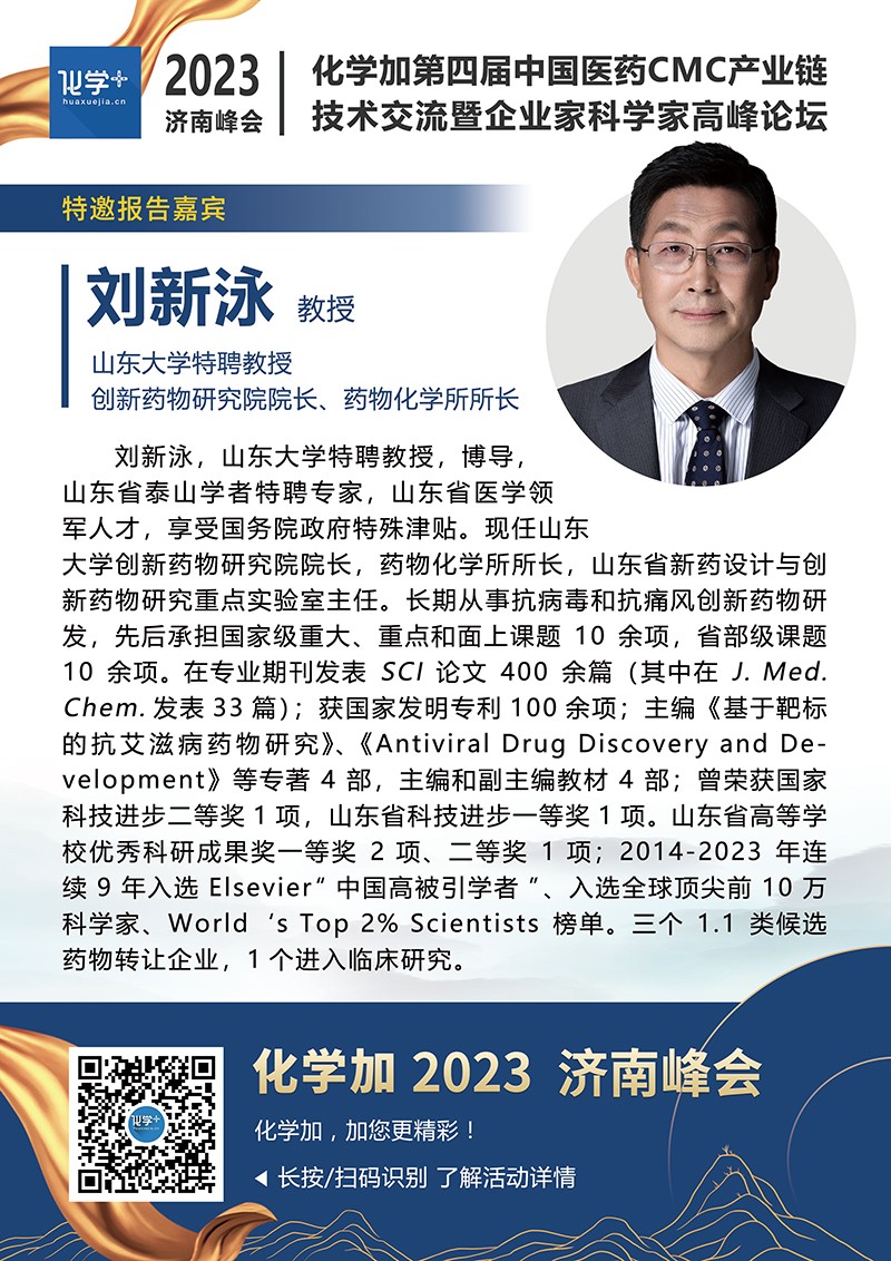 【嘉賓簡介】化學(xué)加2023濟(jì)南峰會(huì):第四屆中國醫(yī)藥CMC產(chǎn)業(yè)鏈技術(shù)交流暨企業(yè)家科學(xué)家高峰論壇