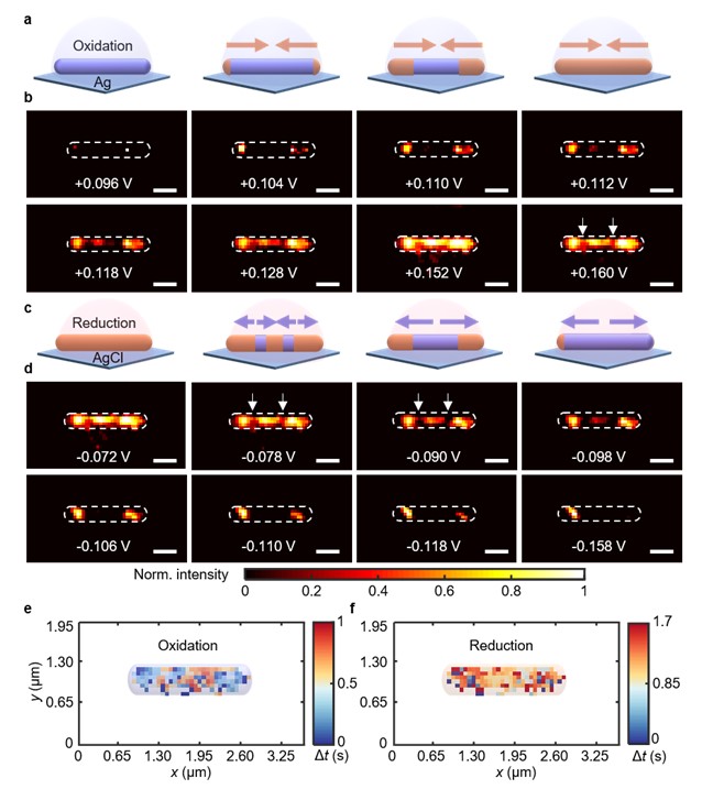 圖2. 單根銀納米線表界面動態(tài)反應過程的高分辨成像