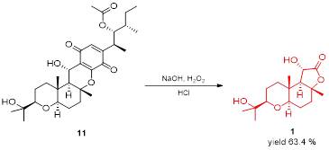 圖2:Cochlioquinone A (11) 氧化降解生成 bipodonine A (1)