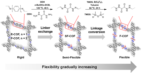 圖 通過結構轉(zhuǎn)化逐步調(diào)控COFs骨架柔性示意圖
