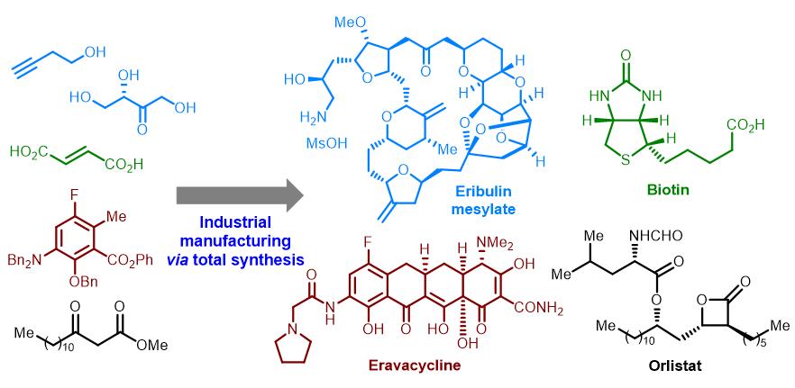 文章首先梳理了近50年來全球已實(shí)現(xiàn)商業(yè)化的天然藥物的工業(yè)全合成,包括前列腺素、艾日布林、依拉環(huán)素、生物素、奧利司他等;隨后介紹了目前已完成中試的代表性天然藥物的全合成;最后進(jìn)一步探討了有望通過全合成促進(jìn)來源稀缺的活性天然產(chǎn)物臨床研究的例子,以及新技術(shù)在天然藥物工業(yè)全合成中的應(yīng)用。通過該展望性論文,作者呼吁更多的藥物化學(xué)家關(guān)注和從事以臨床治療藥物需求為導(dǎo)向而開展天然產(chǎn)物全合成研究,通過可及、安全、經(jīng)濟(jì)的方式滿足復(fù)雜天然藥物的臨床需求。
