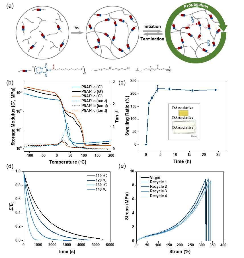 圖2. 基于N-羥基鄰苯二甲酰亞胺酯的動態(tài)共價交聯(lián)聚合物的制備與性能