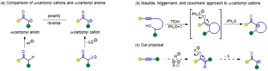 圖2.質(zhì)子酸催化炔烴直接氧化產(chǎn)生α-羰基碳正離子及其轉(zhuǎn)化