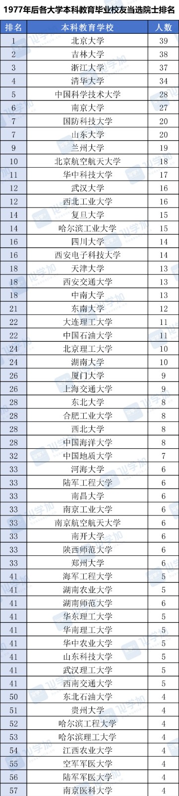 1977年恢復(fù)高考后各大學(xué)本科教育培養(yǎng)校友當(dāng)選院士名單匯總及排名