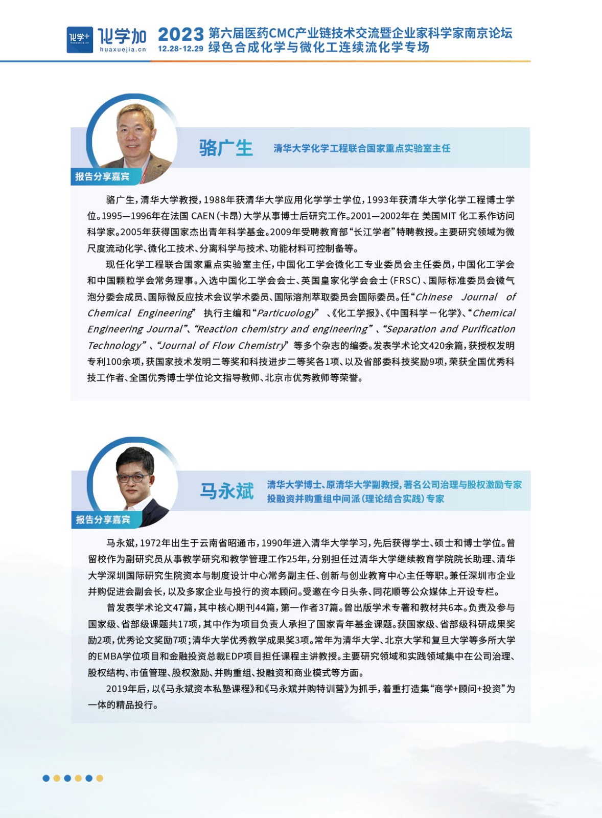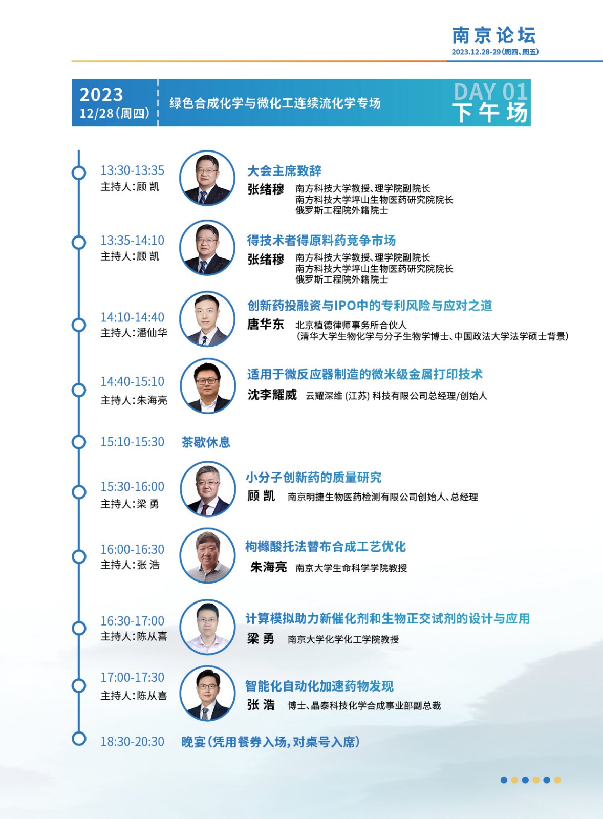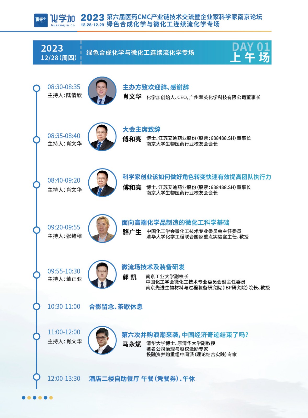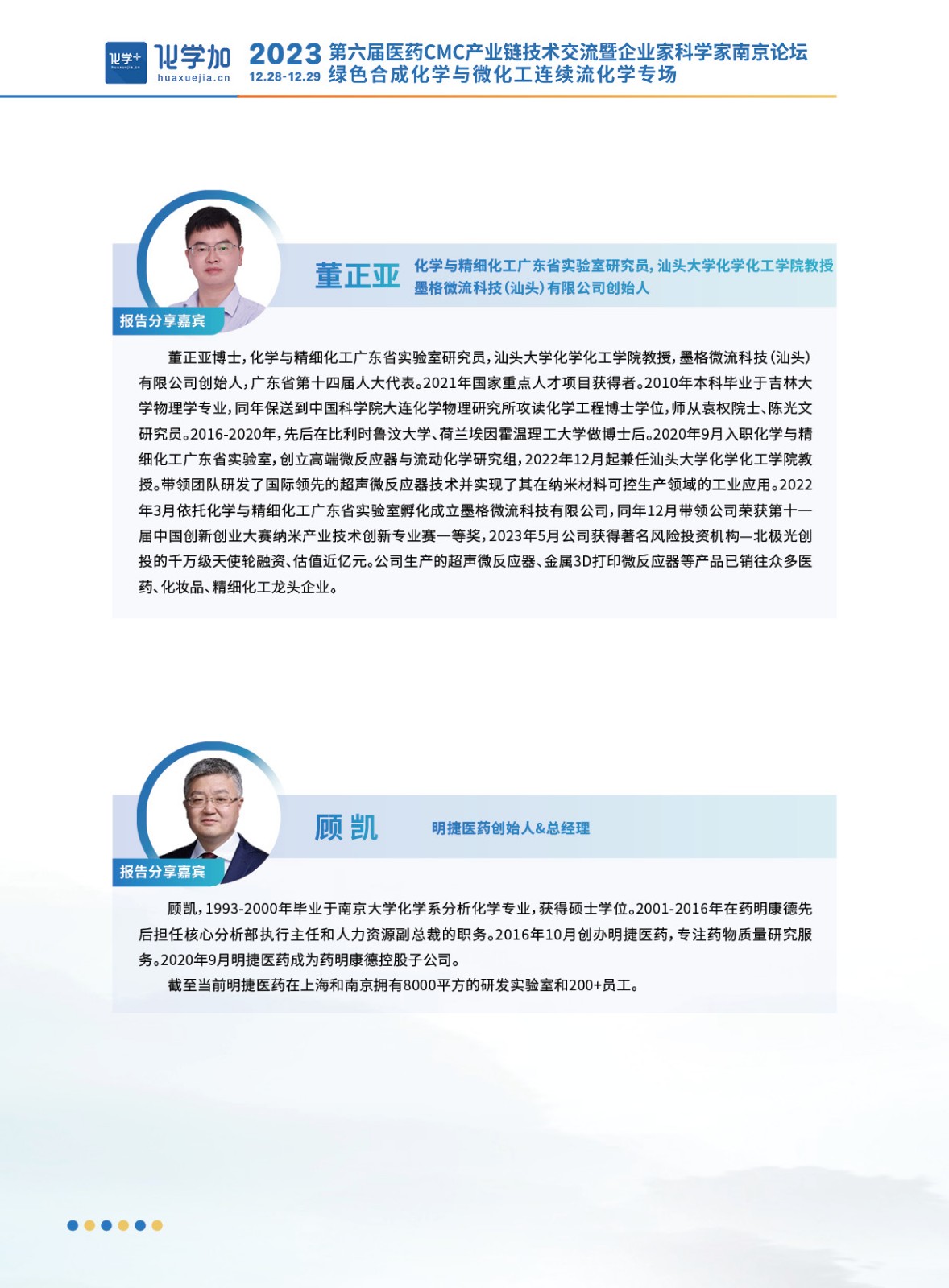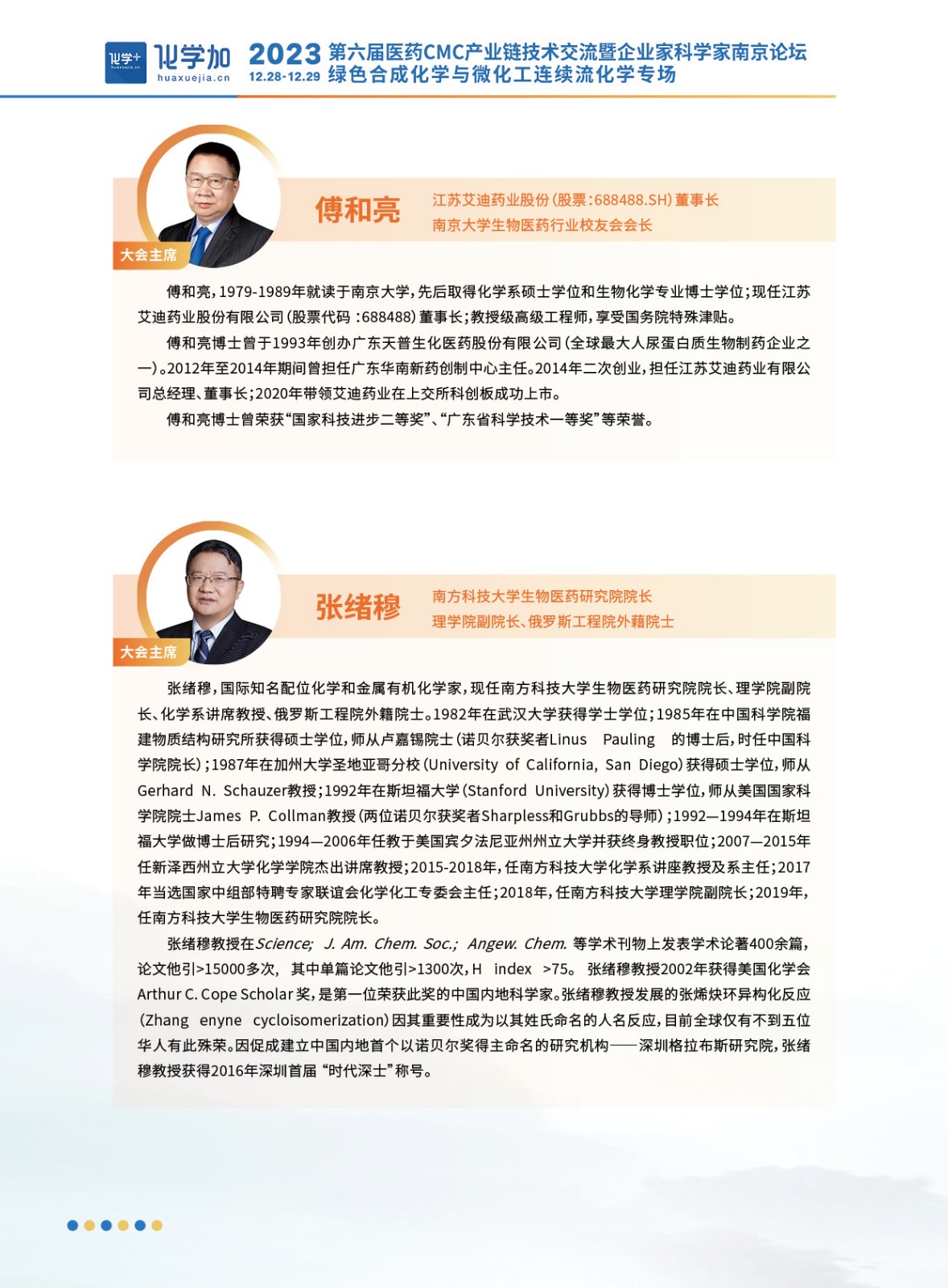 導(dǎo)讀:2023年12月28-29日,化學(xué)加2023南京論壇綠色合成化學(xué)與微化工連續(xù)流化學(xué)專場大會成功舉辦!江蘇艾迪藥業(yè)股份董事長傅和亮博士、南方科技大學(xué)張緒穆教授擔(dān)任本次大會主席,清華大學(xué)化學(xué)工程聯(lián)合國家重點實驗室主任駱廣生教授、南京工業(yè)大學(xué)副校長郭凱教授等20余位知名企業(yè)家、科學(xué)家在峰會上做了主題報告分享,30余位企業(yè)高管圍繞“合作致遠,尋找醫(yī)藥化工產(chǎn)業(yè)2024曙光”在董事長CEO五分鐘演講環(huán)節(jié)做了口頭演講。感謝各位報告嘉賓的精彩分享!感謝所有贊助企業(yè)的大力支持!祝福大家2024年新年快樂!身體健康!心想事成!