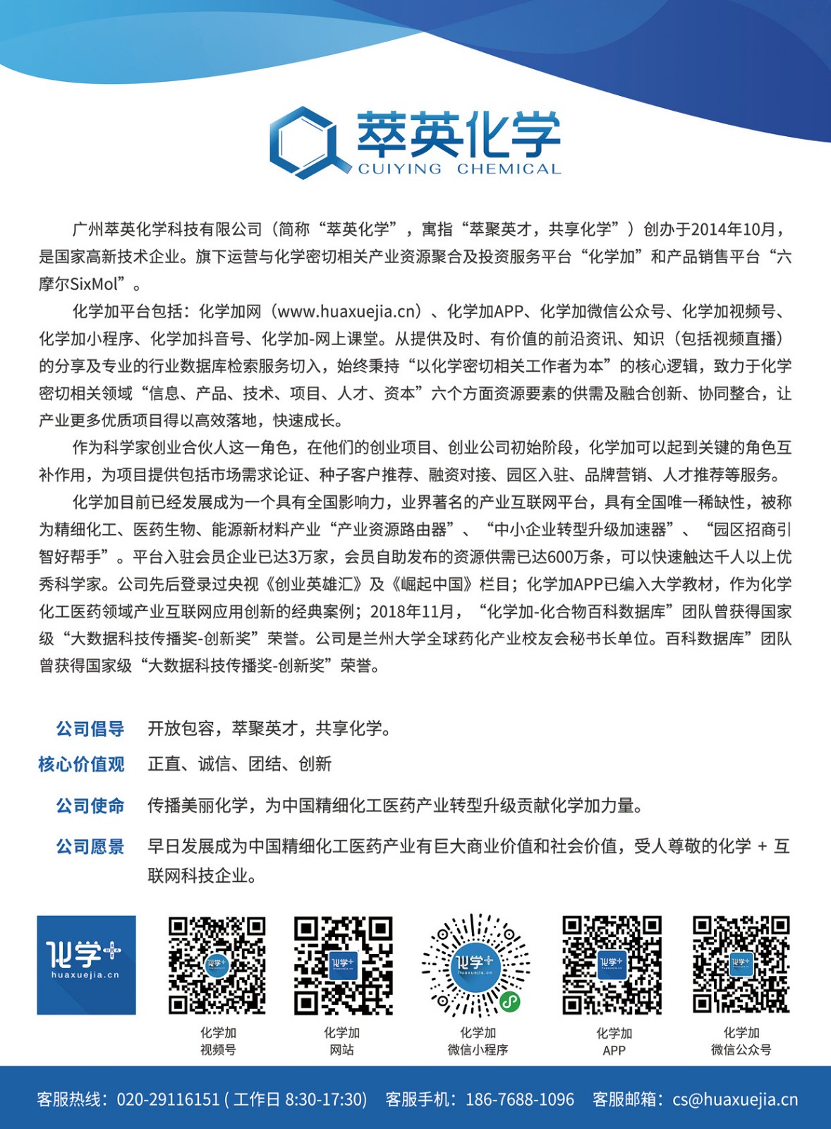 聲明:化學(xué)加刊發(fā)或者轉(zhuǎn)載此文只是出于傳遞、分享更多信息之目的,并不意味認同其觀點或證實其描述。若有來源標注錯誤或侵犯了您的合法權(quán)益,請作者持權(quán)屬證明與本網(wǎng)聯(lián)系,我們將及時更正、刪除,謝謝。 電話:18676881059,郵箱:gongjian@huaxuejia.cn