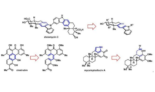 中國(guó)科學(xué)院上海有機(jī)化學(xué)研究所生命有機(jī)化學(xué)國(guó)家重點(diǎn)實(shí)驗(yàn)室李昂課題組發(fā)展了環(huán)化/芳構(gòu)化的合成策略,通過(guò)自主合成芳環(huán)的方式,解決以上策略性問(wèn)題,實(shí)現(xiàn)了含多取代芳環(huán)的xiamycin家族、clostrubin...