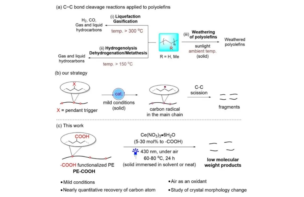 開發(fā)新型的廢聚烯烴高效降解和回收利用技術(shù),不僅能夠降低環(huán)境負(fù)荷,而且有望減少對化石資源的依賴。在本文中,東京大學(xué)Kyoko Nozaki教授課題組利用商業(yè)化的鈰催化劑,實(shí)現(xiàn)了含有少量羧酸基團(tuán)的晶態(tài)聚乙...