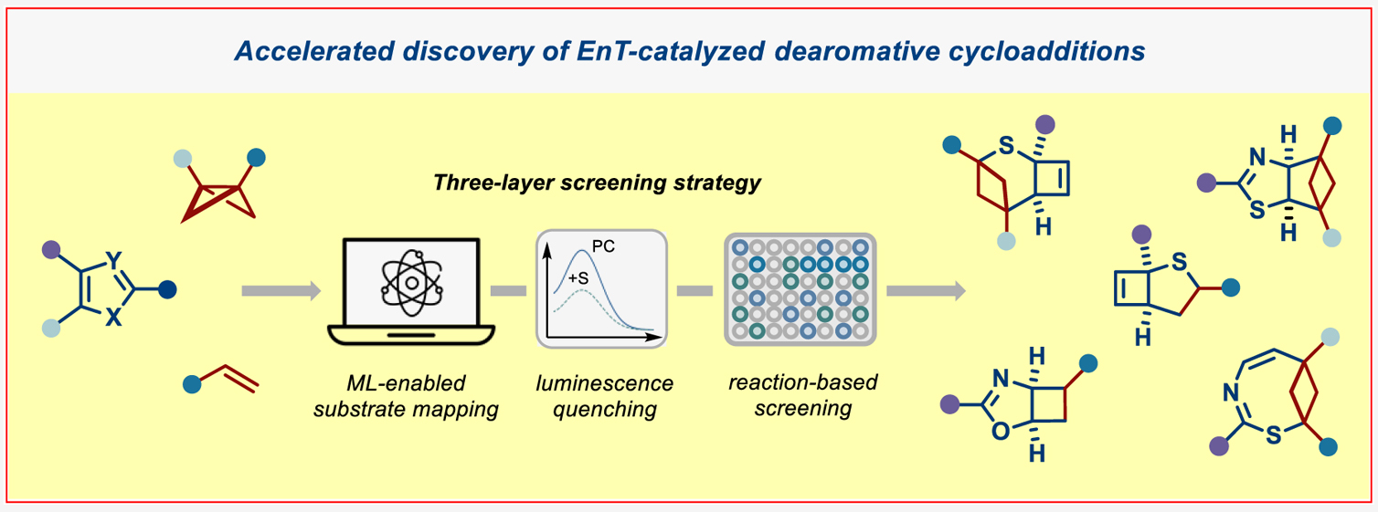 近日,德國明斯特大學(xué)(Universit?tMu?nster)Frank Glorius課題組通過數(shù)據(jù)驅(qū)動(dòng)的三層篩選策略,實(shí)現(xiàn)了單環(huán)雜芳烴(噻吩、噁唑、噻唑)與烯烴/雙環(huán)[1.1.0]丁烷的能量轉(zhuǎn)移催...