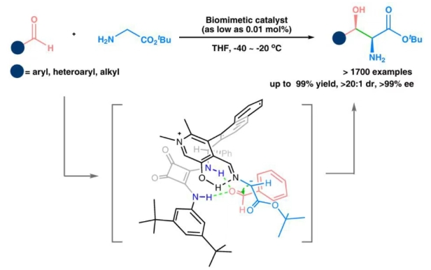 近日,上海師范大學(xué)/上海交通大學(xué)的趙寶國教授和肖曉教授團(tuán)隊(duì)首次實(shí)現(xiàn)了蘇氨酸醛縮酶催化的甘氨酸aldol反應(yīng)的仿生不對稱催化模擬,攻克了這一困擾領(lǐng)域四十年的催化難題。...
