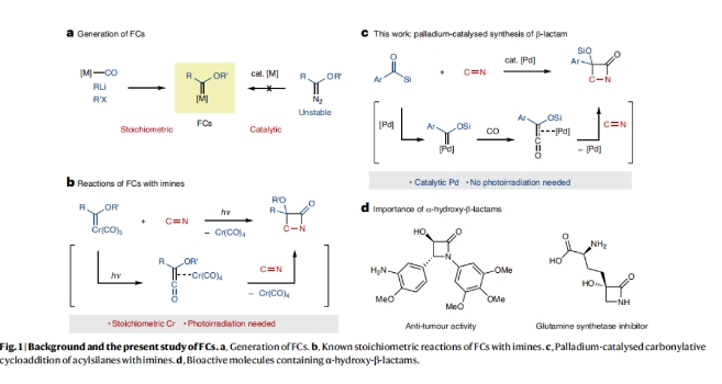近日,日本大阪大學(xué)(Osaka University)Mamoru Tobisu課題組發(fā)展了在鈀催化下,利用芳酰基硅作為Fischer-卡賓絡(luò)合物前體的反應(yīng)體系。該體系可用于與亞胺的催化羰基化環(huán)加成反...