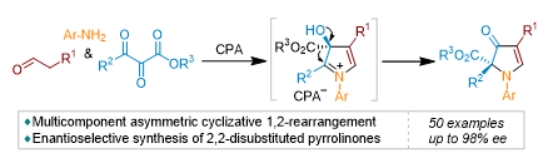 多組分反應(yīng)(MCRs)是獲得結(jié)構(gòu)多樣性和復(fù)雜性產(chǎn)物的高效便捷途徑,在過去十幾年中,得益于手性有機(jī)催化劑和手性金屬催化劑的發(fā)展,不對稱多組分反應(yīng)(AMCRs)得到了廣泛研究。然而,不對稱多組分重排反應(yīng)研...