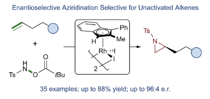 近日,韓國科學(xué)技術(shù)院Mu-Hyun Baik與美國埃默里大學(xué)Simon B. Blakey課題組報道了一種平面手性銠茚基催化劑促進(jìn)非活化末端烯烴的對映選擇性氮雜環(huán)丙烷化反應(yīng)(aziridination...